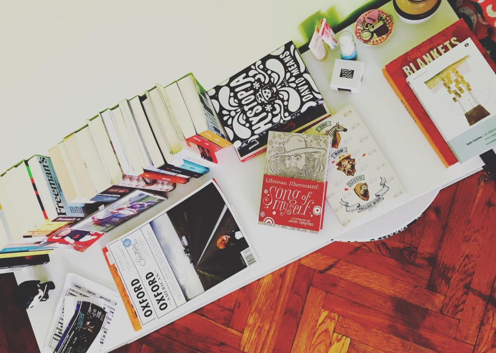 Per il settembre newyorkese (vedi i post sottostanti nell’homepage o qui, qui, qui e qui) ho pensato che Marta Ciccolari, anima errante e solida di La McMusa, blog che si occupa di letteratura e cultura nordamericana, fosse la persona giusta per completare il quadro, per parlarci del suo comodino.