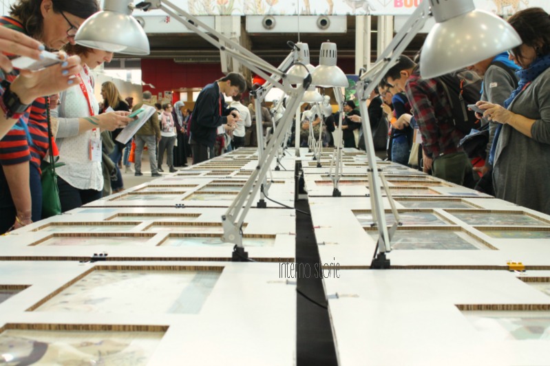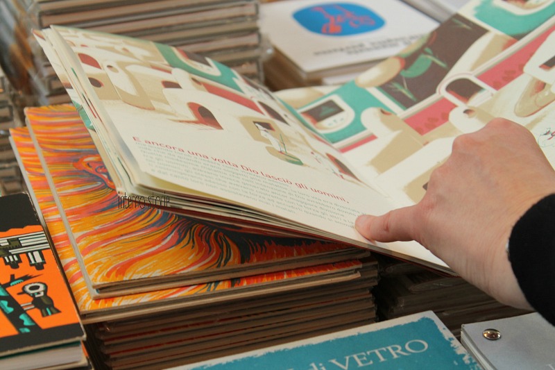 La mia attenzione è si è riversata sulle illustrazioni, per lo più esposte nello spazio dedicato a chi è capace di tenere in mano matita e pennello, a inventare storie con pochi tocchi di colore. All’entrata della fiera si concentra il talento di bravissimi artisti internazionali. C’è anche il sempre magnifico Andrea Antinori.
