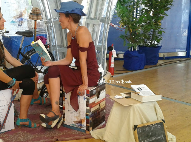 Della Lettrice vis-à-vis ne avevo già avuto notizia. Ed eccola presente al festival: suoni il campanello, fai due chiacchiere con lei, scegli una frase e un libro che la lettrice leggerà solo a te. Sul suo sito è spiegato con più chiarezza il suo progetto.